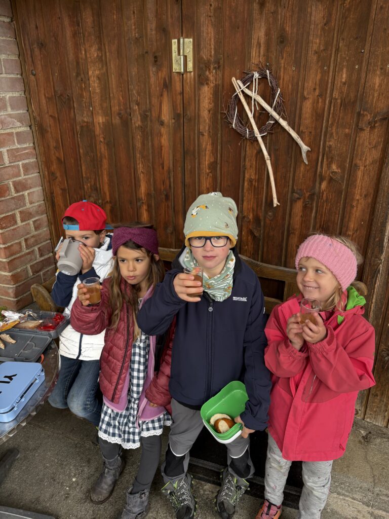 Mit großem Interesse verfolgten die Schülerinnen und Schüler jeden Schritt – vom Waschen und Zerkleinern der Äpfel bis hin zum Pressen und Abfüllen des Saftes. Besonders spannend war es natürlich, am Ende den frisch gepressten Apfelsaft zu probieren – ein Genuss, der allen sichtlich schmeckte!