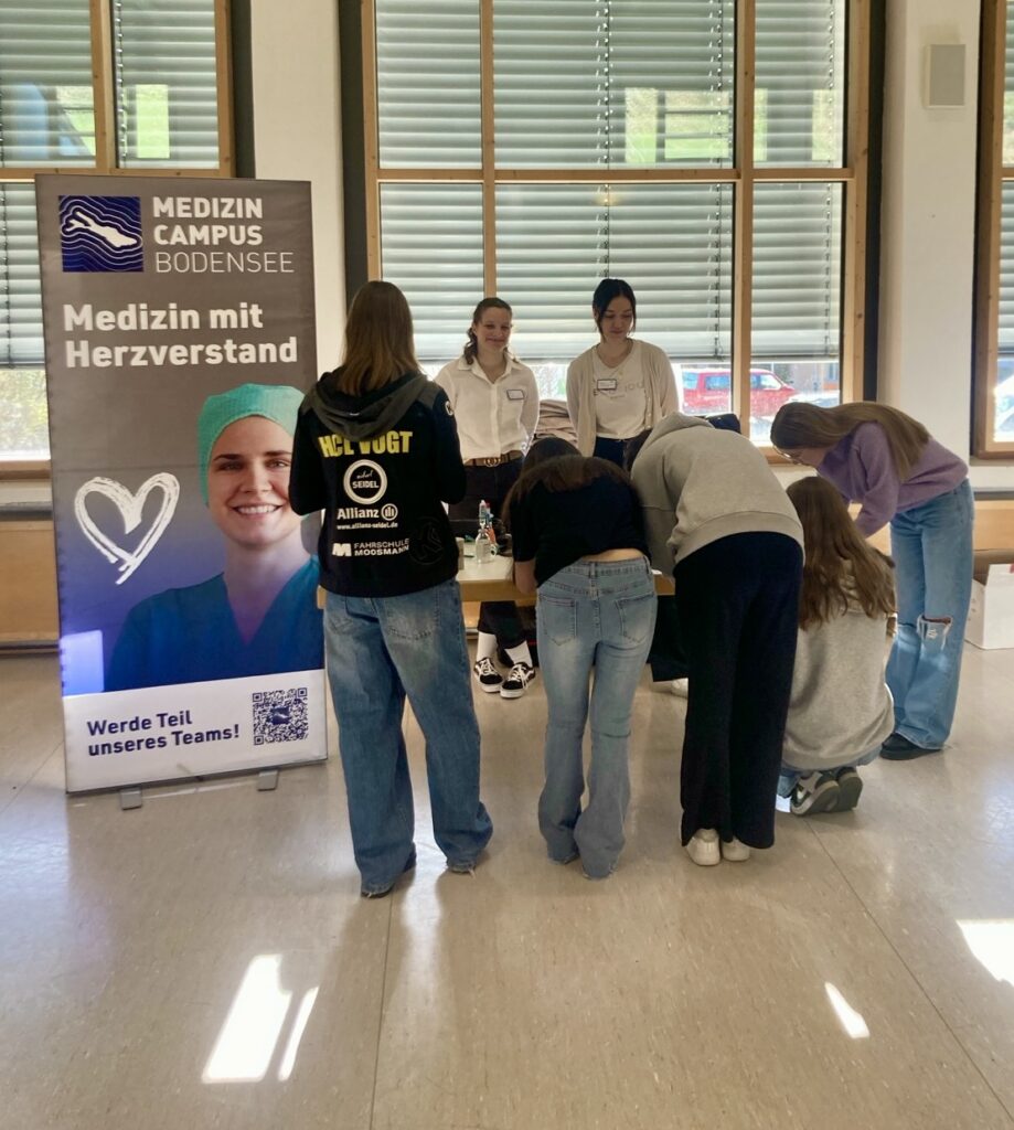 Grieshaber Logistik, Kindertageseinrichtungen Bodnegg, Waldner und HAS Technologie GmbH, Liebherr, Sportklinik Ravensburg, Agentur für Arbeit, Firmengruppe Burk, Haas-Galabau, Gabur, Volksbank Bodensee-Oberschwaben, EBZ, Siloanlagen Achberg, Zimmerei Sprenger, Stiftung Liebenau, Polizei. Donnerstagnachmittag informierten zudem die BWS Wangen und Edith-Stein-Schule Ravensburg über Ausbildungswege.