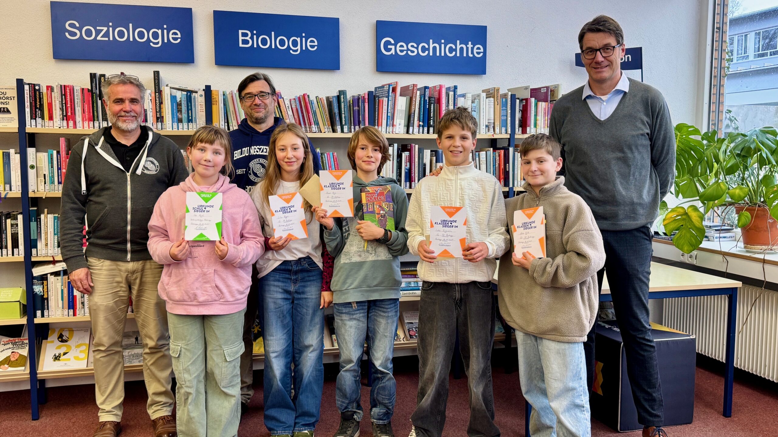 Bei den Platzierungen konnte sich Ida Raich (6a) als Schulsiegerin durchsetzen. Den zweiten Platz belegte Hannes Beck (6b), gefolgt von David Badicescu (6e) auf dem dritten Platz. Außerdem platzierten sich Lilou Burger (6c) und Anton Kölle (6d). Damit zeigte der Wettbewerb einmal mehr das große Talent und die Begeisterung der Sechstklässlerinnen und Sechstklässler fürs Lesen.