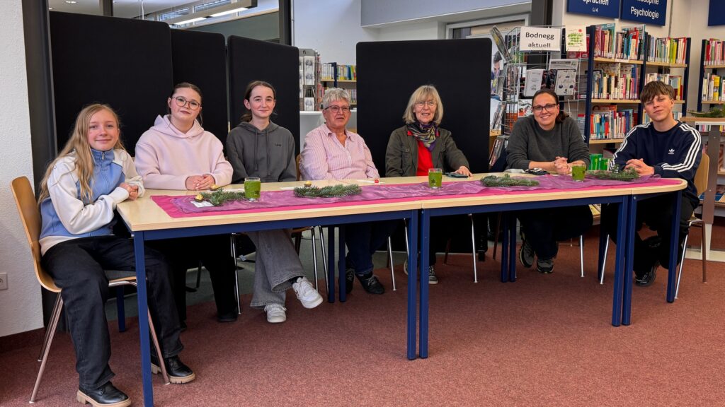 In der vergangenen Woche fand in der Bücherei der diesjährige Lesewettbewerb der Klassenstufe 6 statt. Die zuvor ermittelten Klassensieger traten dort mit ihren ausgewählten Textstellen gegeneinander an und sorgten für eine spannende und stimmungsvolle Vorleserunde. Die Jury war hochkarätig besetzt: Neben der Büchereileiterin Frau Mikolitsch und ihrer Mitarbeiterin Frau Hummel bewertete Frau Mayer aus dem Lehrerkollegium die Beiträge. Unterstützt wurde das Gremium außerdem von vier ehemaligen Teilnehmerinnen und Teilnehmern aus der Schülerschaft, die ihre Erfahrung einbrachten. Organisiert wurde der Wettbewerb von Herrn Fark und Herrn Fischer, die für einen reibungslosen Ablauf sorgten und den jungen Vorleserinnen und Vorlesern eine motivierende Bühne boten.