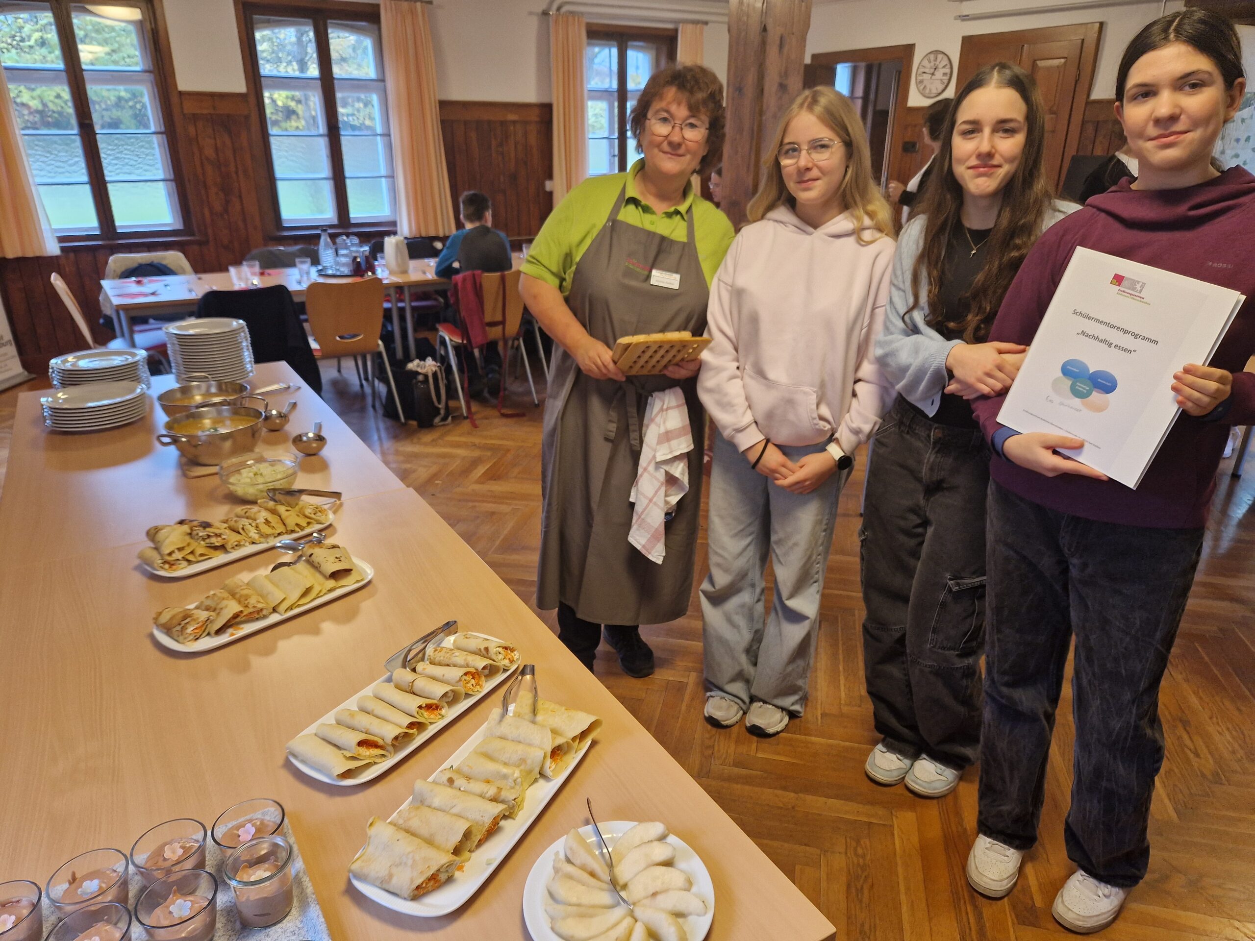 Letztendlich stärkt diese Qualifikation unsere Schülerinnen dabei, Aktionen am Bildungszentrum anzustoßen, um dort aktiv im Rahmen von Projekten und der Schülerfirma Catering den erlernten Nachhaltigkeitsgedanken umzusetzen. Hierfür erwerben die Schülerinnen ein Zertifikat vom durchführenden Landratsamt. Wir gratulieren für diesen besonderen Einsatz.