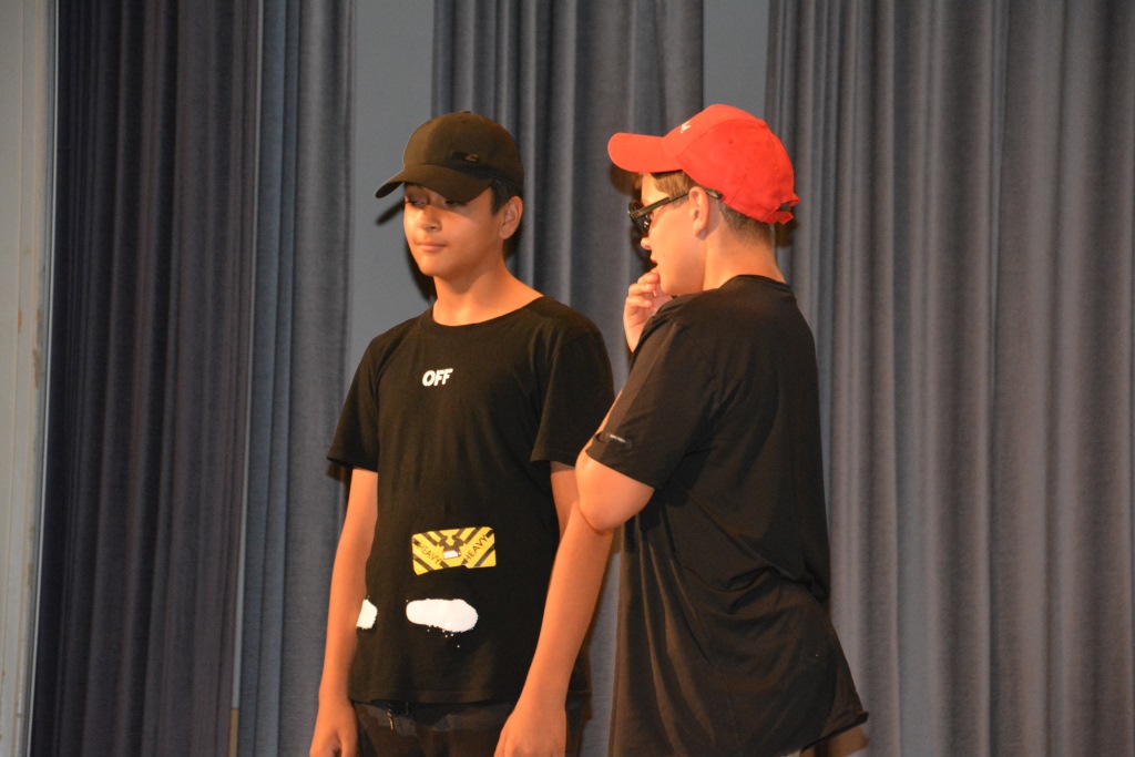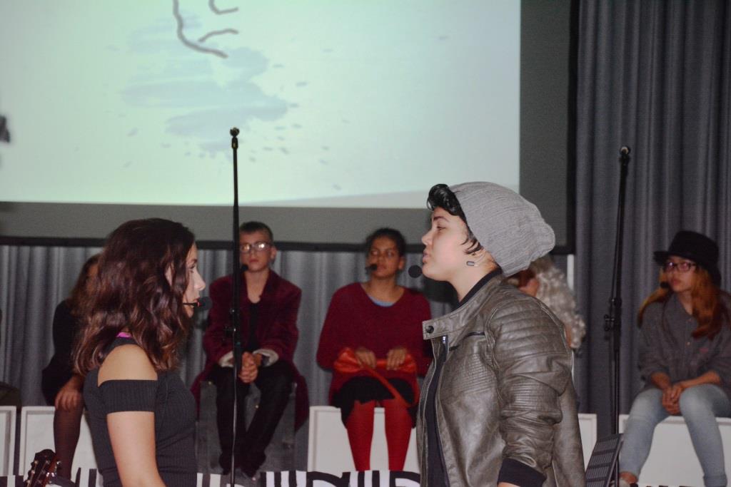 Soviel vorweg, es wurde eine rundum gelungene Musicalaufführung für das Publikum und für die Mitwirkenden! Doch kurz zum Inhalt: Alfred Piepenmurks, ein ehemaliger Schüler, ist der aktuelle Literaturnobelpreisträger. Für die Rektorin sonnenklar: Da lässt sich etwas für die Schule herausschlagen. Der Schulname soll in Piepenmurks-Schule umgetauft werden. Piepenmurks will diese Umtaufe selbst vornehmen und schreibt selbst einen Gedichtwettbewerb aus. In der Schule beginnt der Wettbewerb um das beste Gedicht. Das geht aber nicht ohne Querelen, Konkurrenz, Neid, Missgunst ab. Lehrer nehmen als Ghostwriter stillschweigend teil. Ein Schulfest wird geplant, es kommt zum Eklat. Chantal will unbedingt gewinnen, bekommt aber ein falsches Gedicht untergeschoben. Sophie schreibt ebenfalls ein Gedicht, das seine Wirkung nicht verfehlen wird. Unterstützung und Zuwendung erfährt sie dabei von Martin. Leider kommt sie zu spät auf das Schulfest Alfred Piepenmurks entpuppt als Muttersöhnchen und Egozentriker. Als Siegertext bestimmt er die Schulordnung, das Preisgeld will er selbst einheimsen, er tauft die Schule auf seinen Namen. Dank Martins Hilfe kann Sophie doch ihr Gedicht vortragen. Piepenmurks besinnt sich und übergibt den Preis an Sophie. Es kommt zur Versöhnung der verfeindeten Lager. Die Schule behält den angestammten Namen und …Happy End…