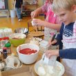 Gemeinsam kochen, gemeinsam essen. Dass man auf diese Art und Weise unterhaltsam einen Schultag bewältigen kann, haben die Grundschüler im Rahmen ihres Projekttags kurz vor den Herbstferien gemeinsam mit ihren Lehrkräften erlebt. Denn der Tag stand ganz im Zeichen des Erntedankfests. Die erste stellvertretende Schulleiterin Frau Kirchhoff stimmte die ABC-Kochschützen im Vorfeld auf den Tag ein und erklärte in ihrer Ansprache den jahrtausendalten Brauch, der aus Dankbarkeit für die harte Erntearbeit auf den Feldern und Gärten entstand. Daraufhin gingen die Schülerinnen und Schüler in die jeweiligen Klassen und bereiteten munter ihre Kreationen vor. Diese umfassten in der Klasse 1a Kräuterquark auf Pumpernikel plus Kräuterlimonade. In der Klasse 1b gab es Apfelmus und Waffeln. Klasse 2a bereitete gefüllte Pfannkuchen mit Kräuter oder Marmelade zu. Kartoffel-Wedges mit Ketchup entstanden in Klasse 3a, während in Klasse 3b eine Gemüsesuppe mit Zutaten aus dem Schulgarten kreiert wurde. Kürbissuppe wurde in Klasse 4a probegeschlürft und die Klasse 4b hatte Erdbeermarmelade und Früchtequark im Programm. Nachdem alles fertig zubereitet war, trafen sich alle Starköche im Foyer an einem Buffet zum munteren Probieren der anderen Gerichte und zum Anbieten der eigenen Schöpfungen.
