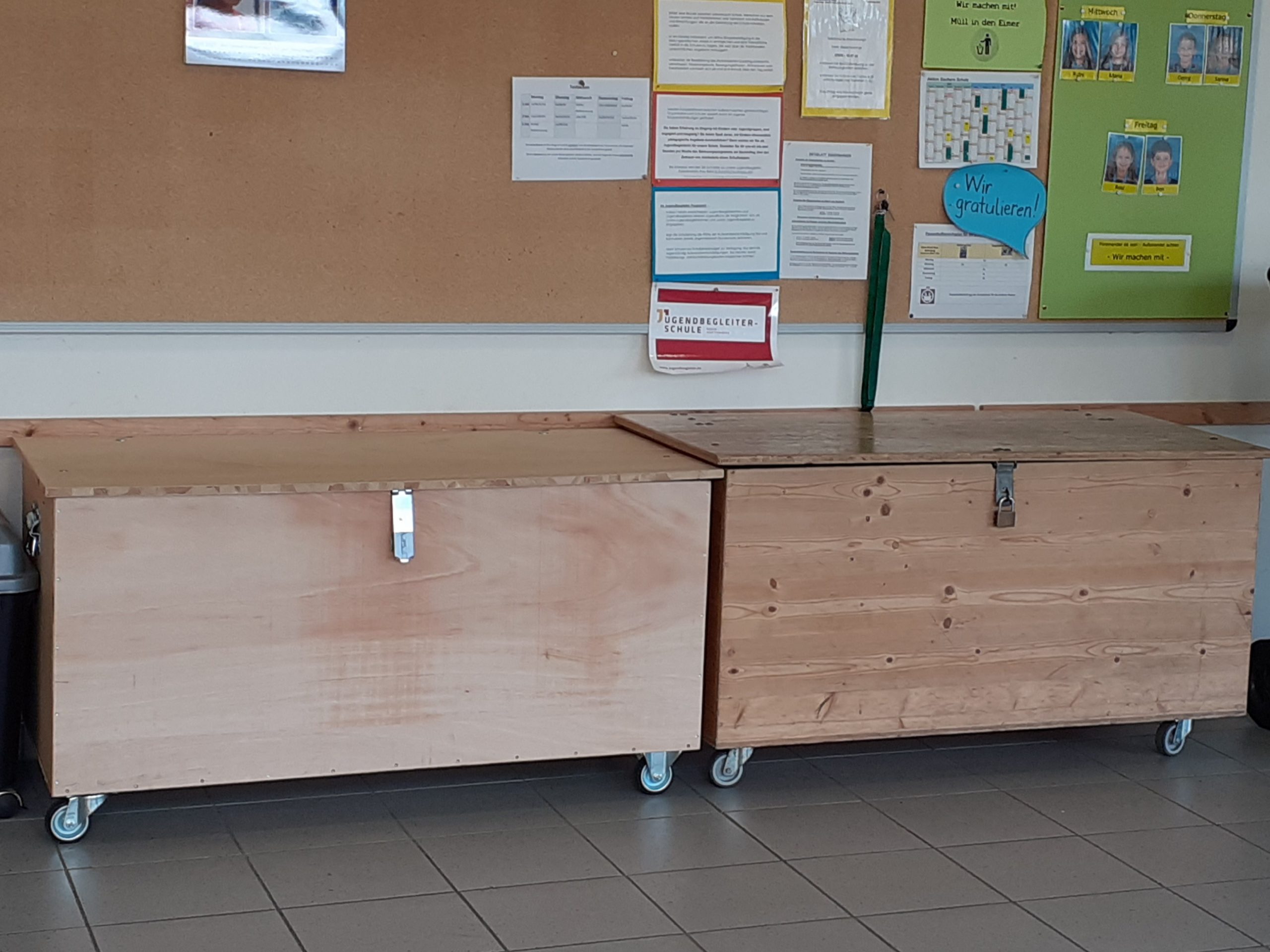 Die Spielekiste der Grundschule hat Verstärkung bekommen! Endlich mehr Stauraum für Spielgeräte & Co. für die Pausengestaltung und Bewegungszeiten in der Grundschule. Tausend Dank an die Schülerfirma des BZB mit Uli Augustin und Manfred Locher.
