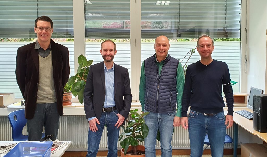 Bild 3: (v.l.n.r.) Schulleiter Matt, Ausbildungsleiter Geißler von Feneberg, BZ-Berufsorientierungsteam Winkler & Echteler.